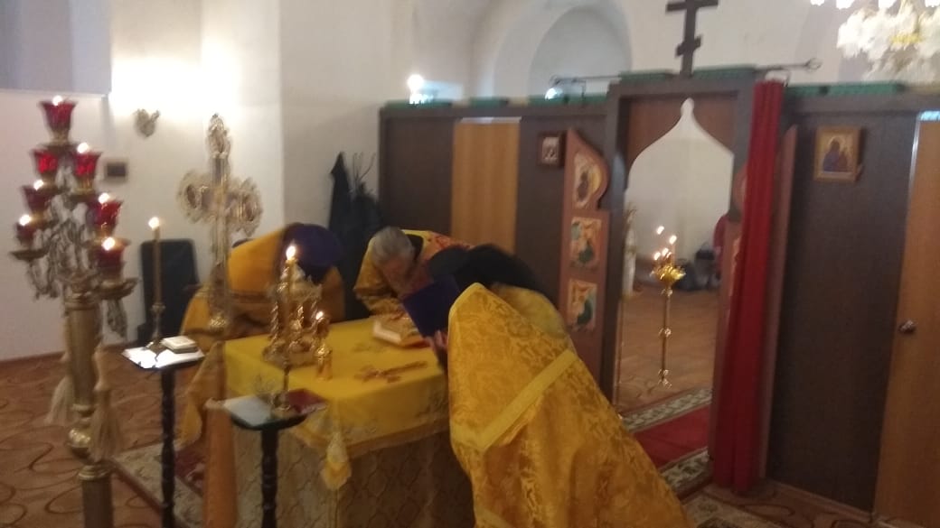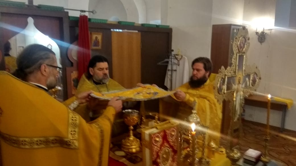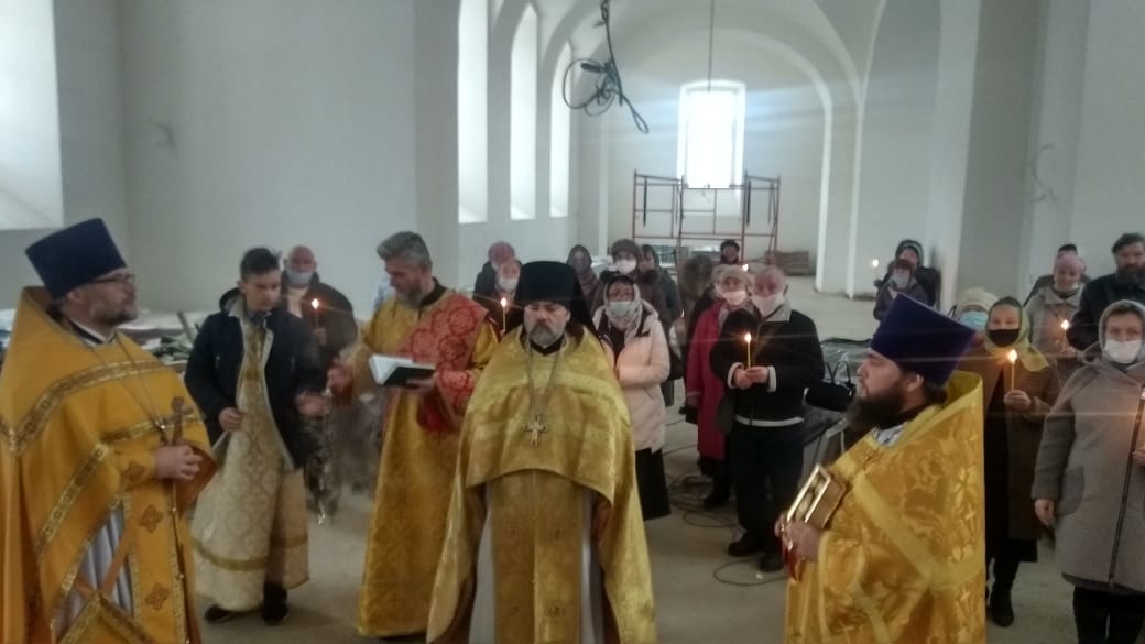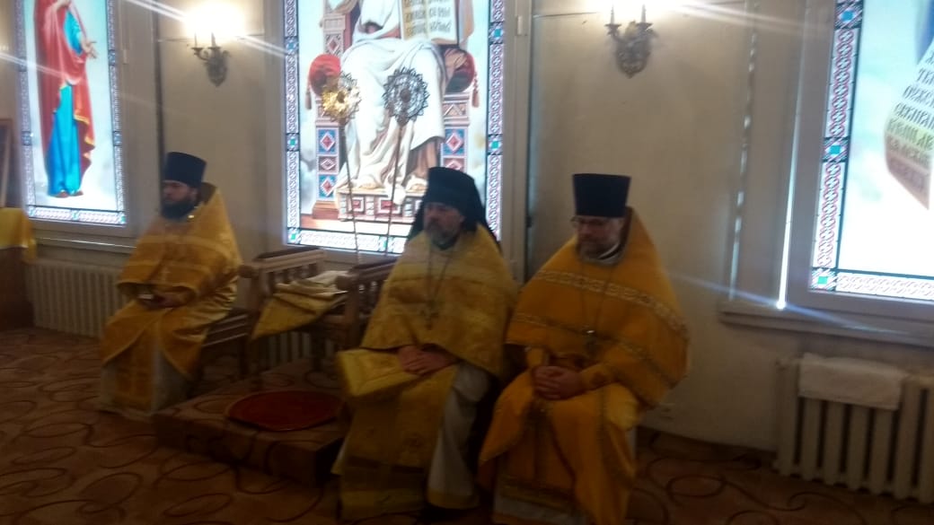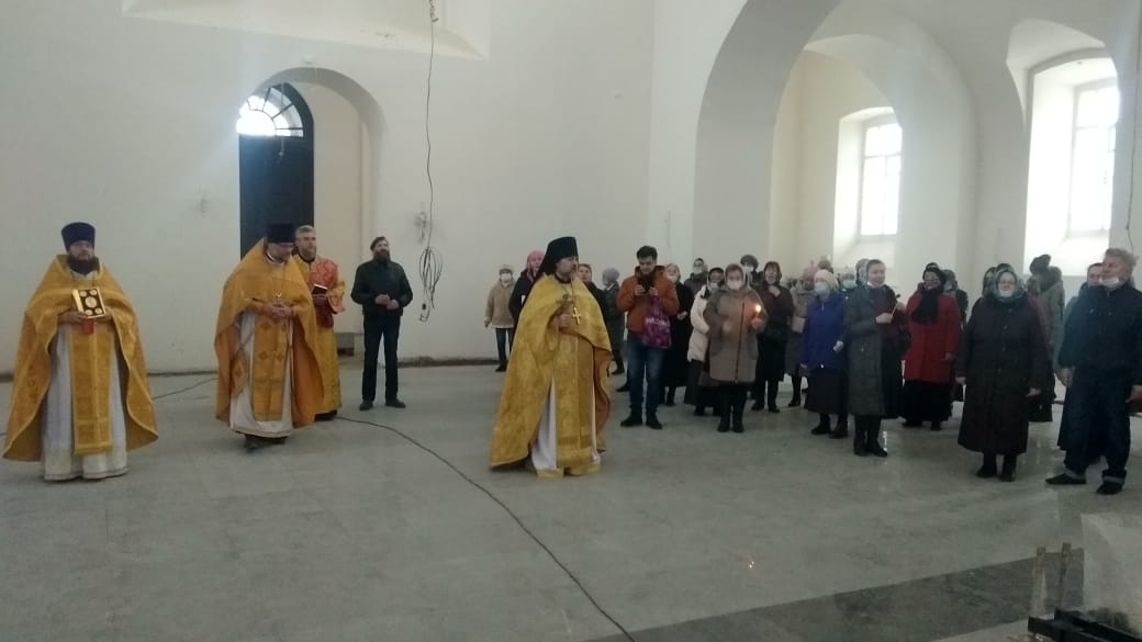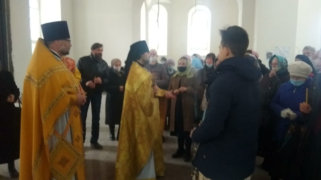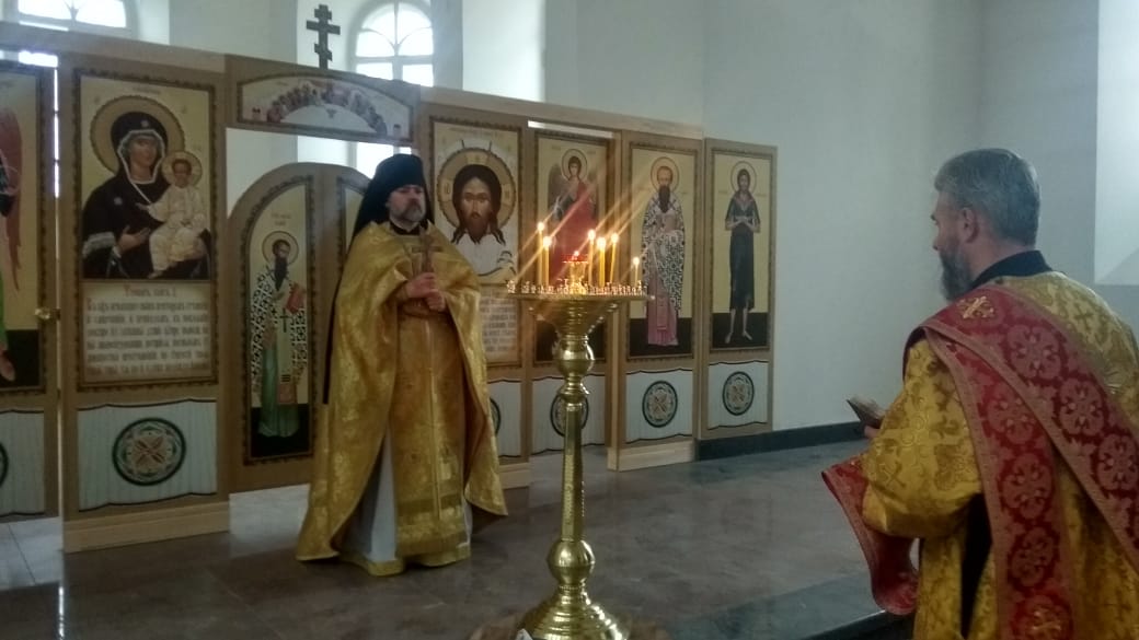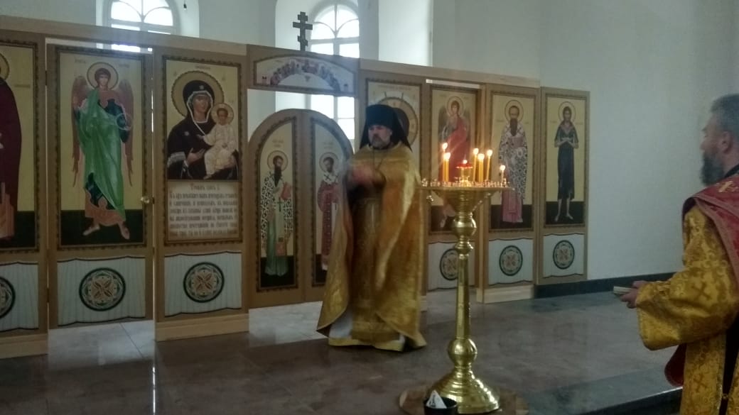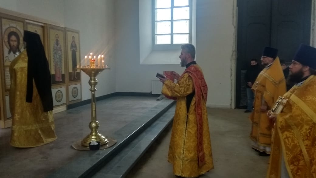 По окончании Божественной литургии все прихожане и священники перешли в Благовещенский собор, в котором был совершен первый , с момента реставрации молебен.