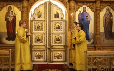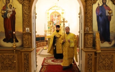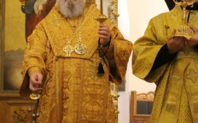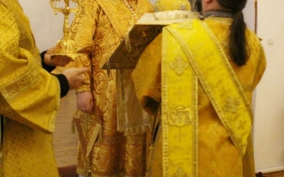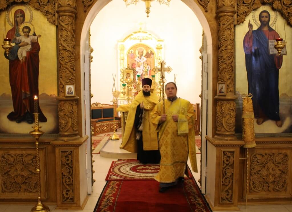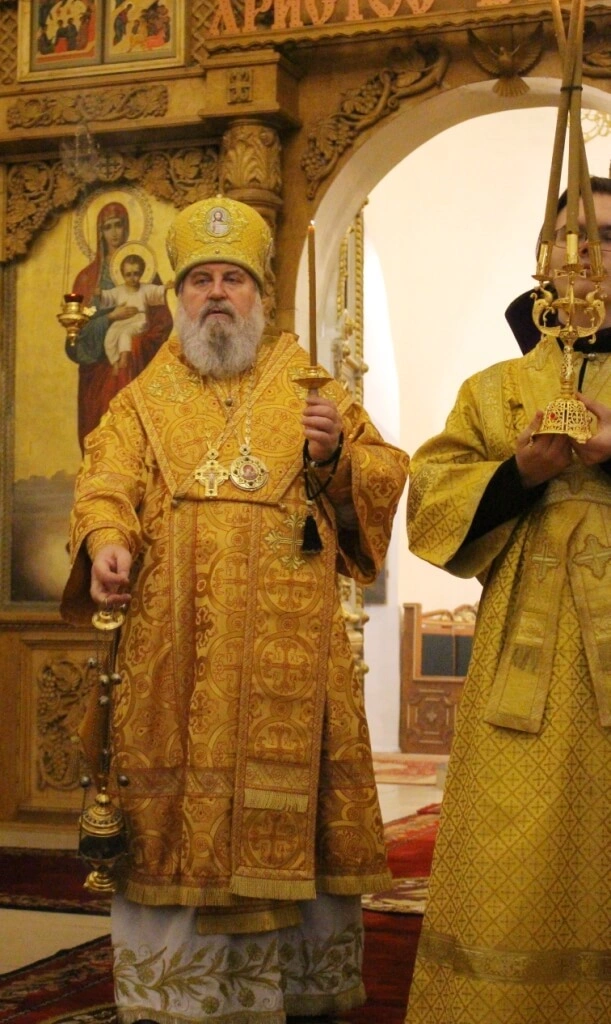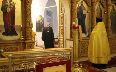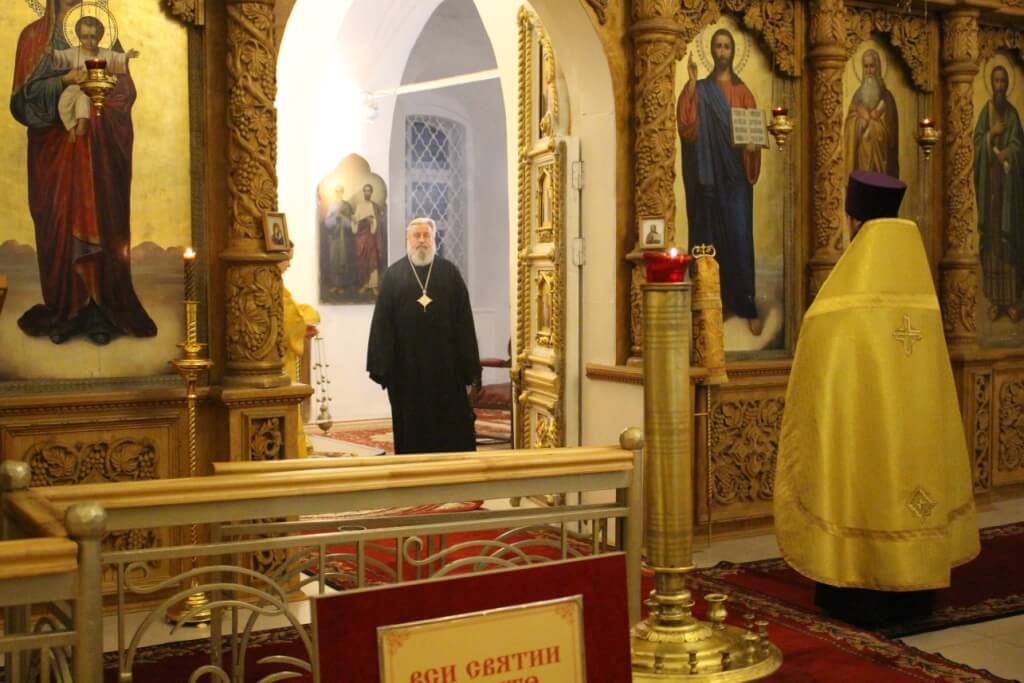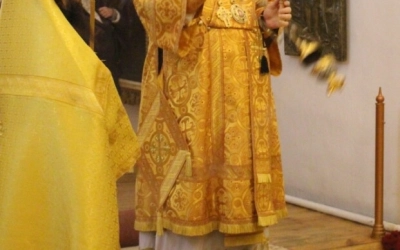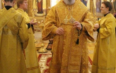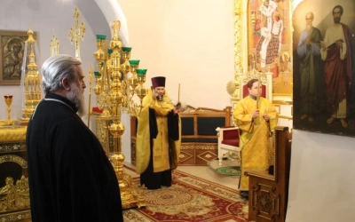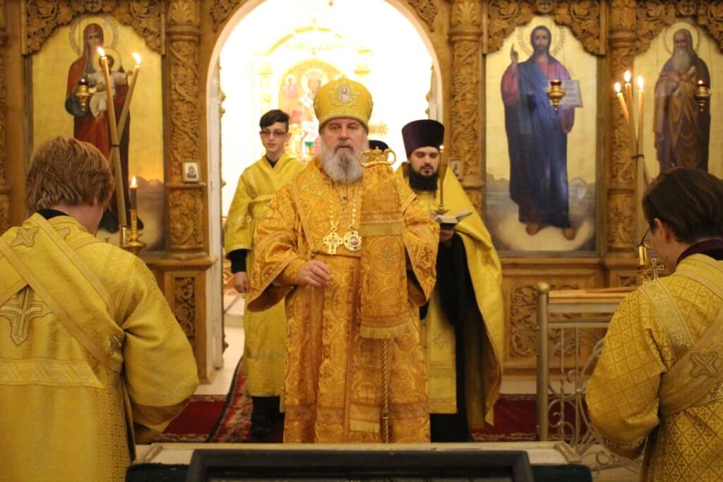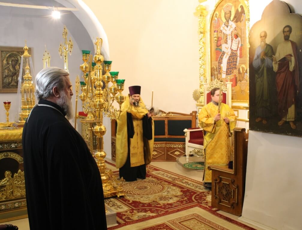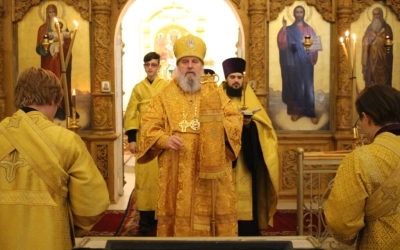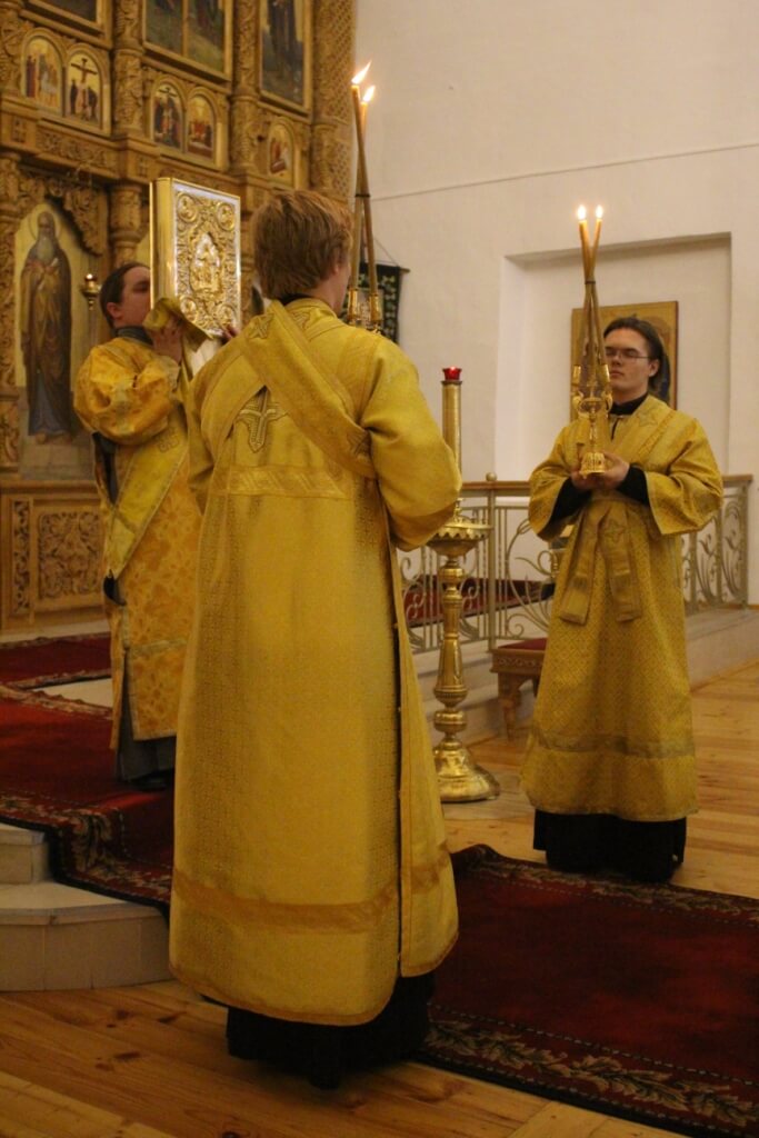 Правящему архиерею сослужил: настоятель Свято-Троицкого кафедрального собора города Вязьма иерей Александр Курмелёв.