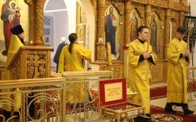 В завершении богослужения владыка Сергий совершил молитву перед чудотворным образом Божией Матери "Иверская".