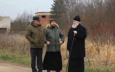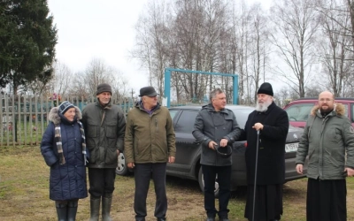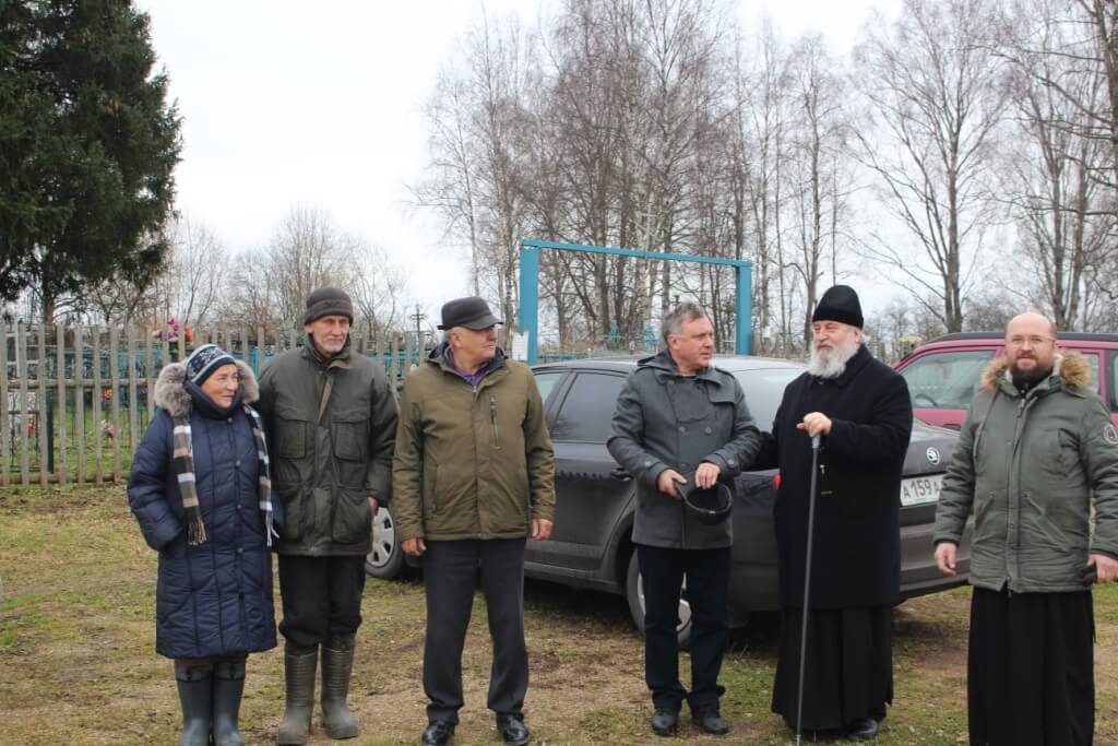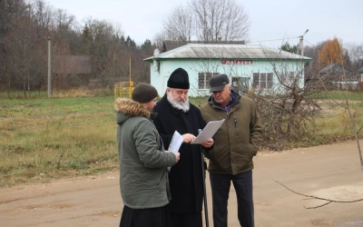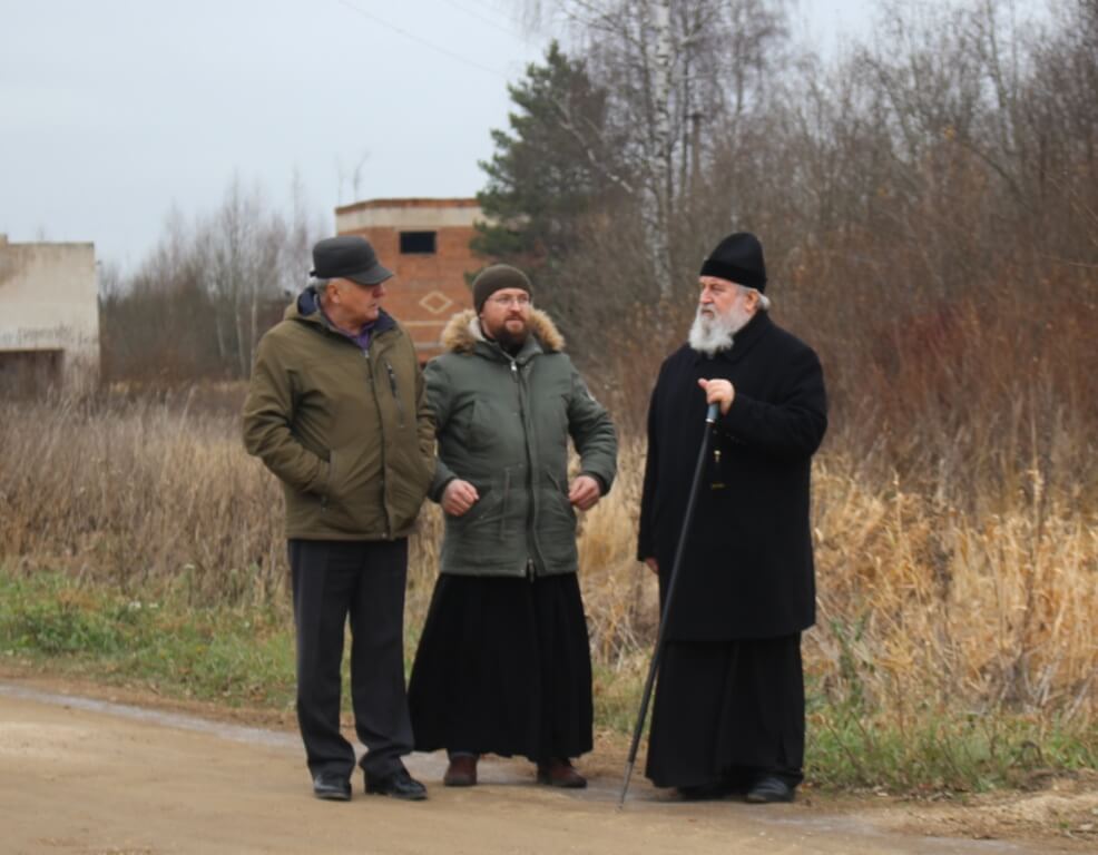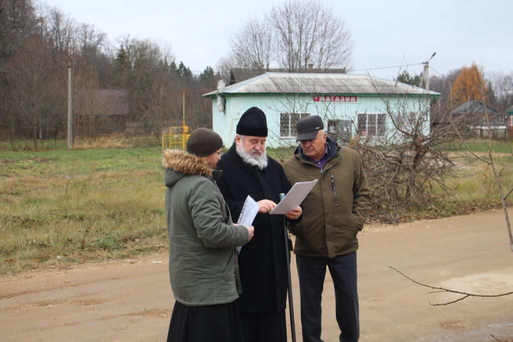 Затем Владыка Сергий вместе с Александром Тимофеевичем посетили деревню Мозжерово, где обсудили строительство кладбищенской часовни во имя Святых Первоверховных Апостолов Петра и Павла, в память ранее находившегося в этом месте одноимённого храма.