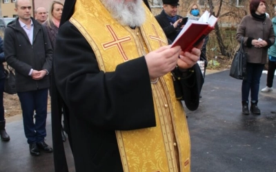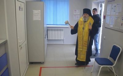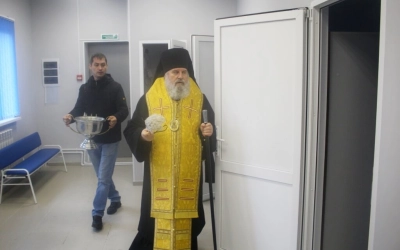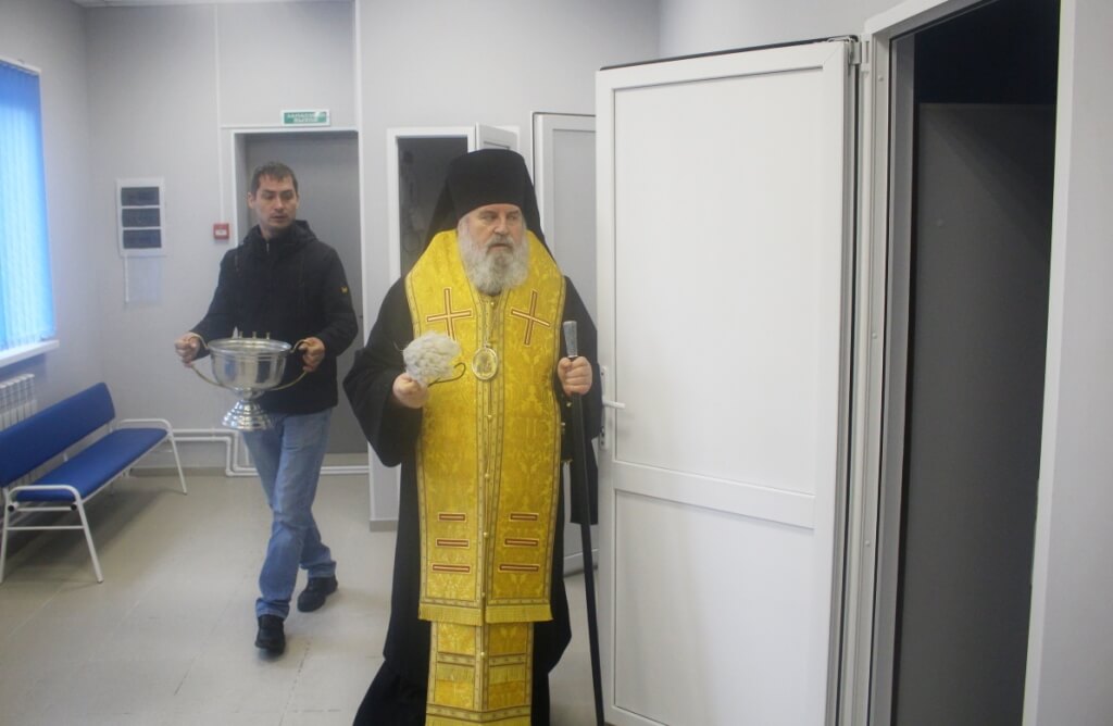 С приветственным словом к присутствующим обратился Епископ Вяземский и Гагаринский Сергий, после чего Глава Вяземкой епархии совершил чин освящения новосозданного здания нового медицинского центра.