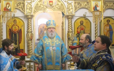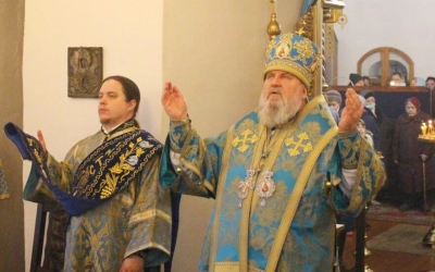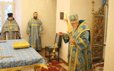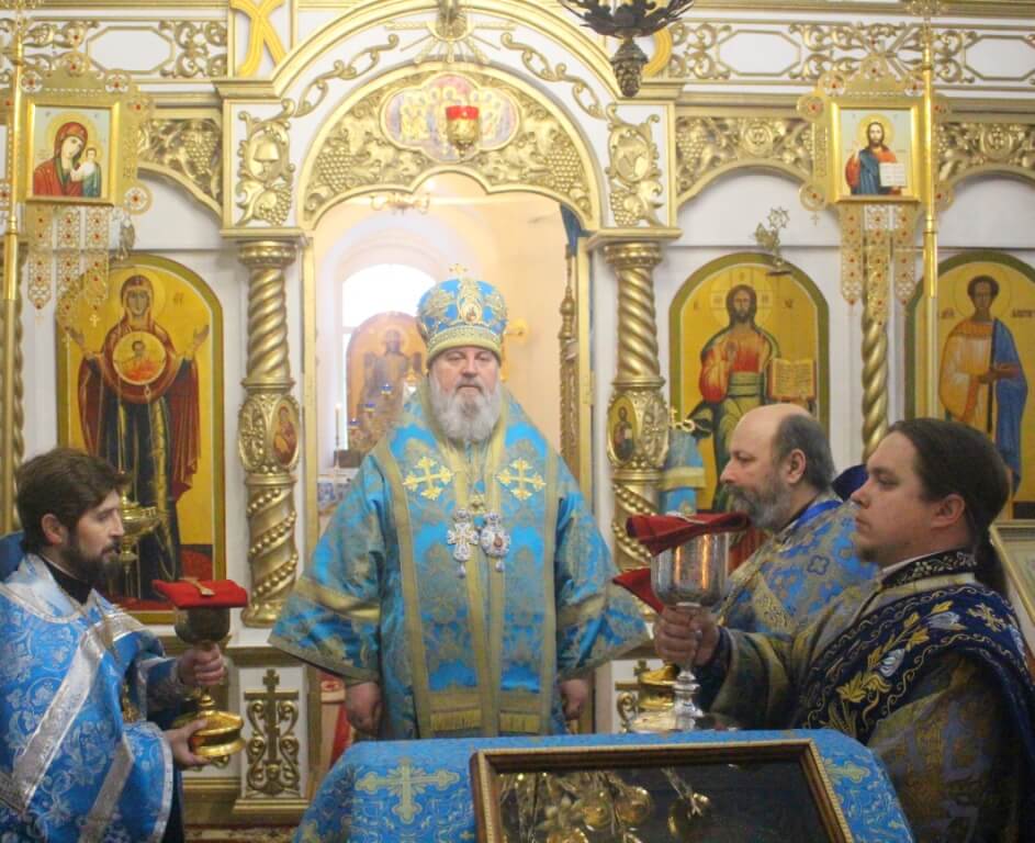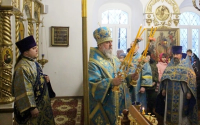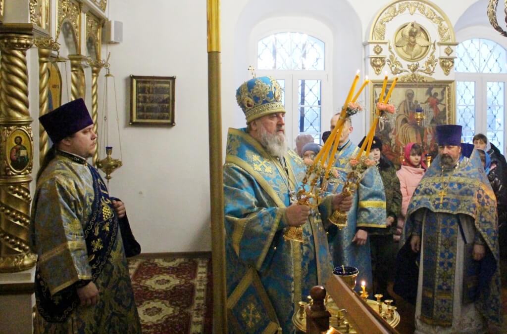 Правящему Архиерею сослужили: настоятель Введенского храма протоиерей Олег Переверзев, клирик Введенского храма протоиерей Георгий Биляк.