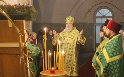 По завершении богослужения епископ Сергий обратился к присутствующим с Архипастырским словом, поздравив духовенство и всех участников богослужения с Престольным праздником.