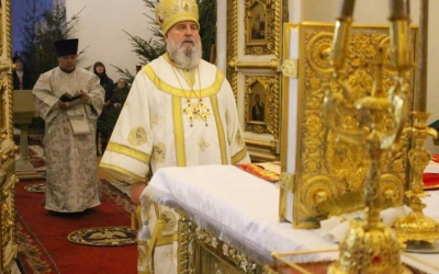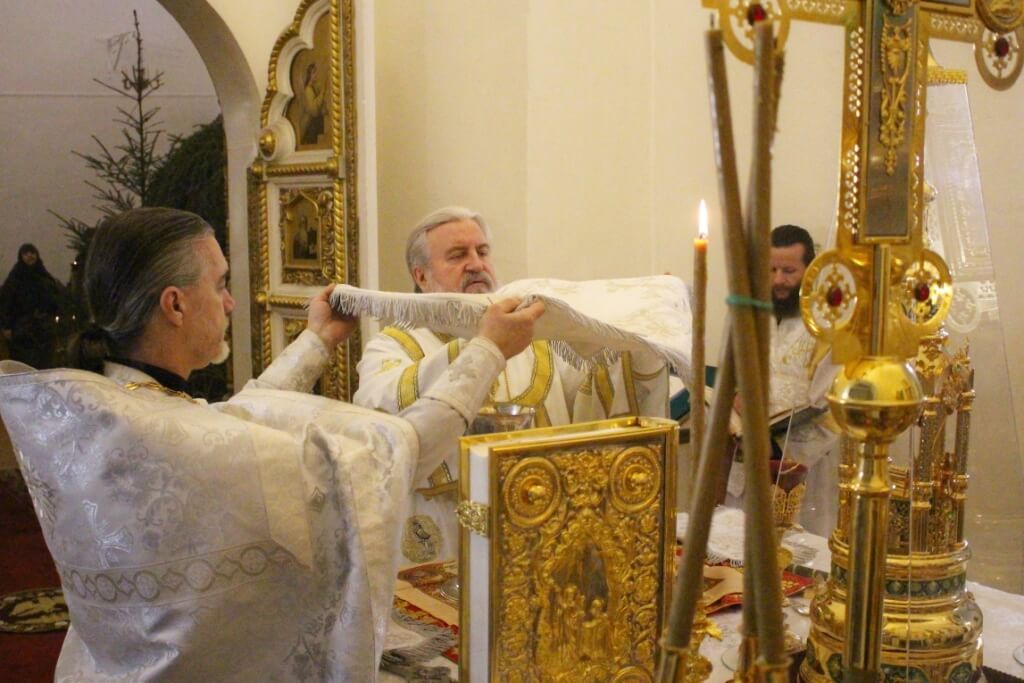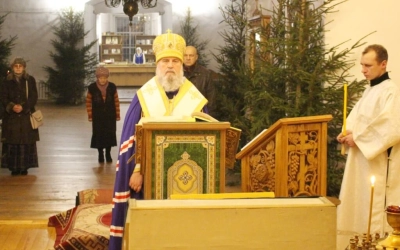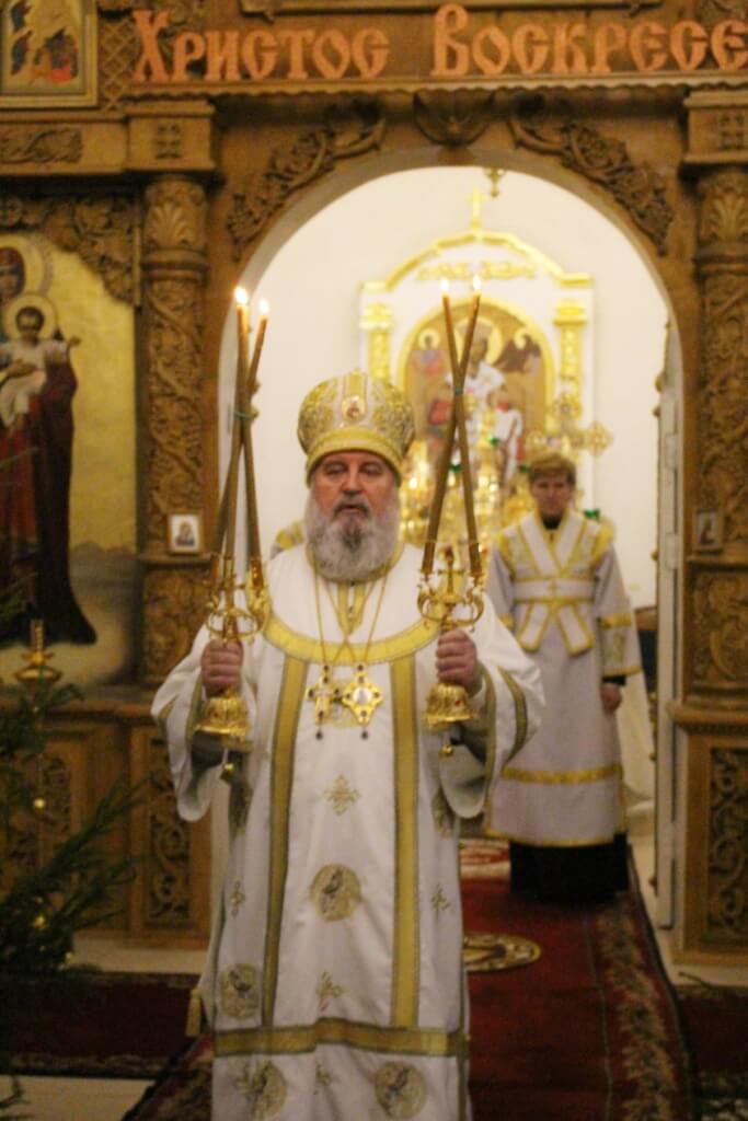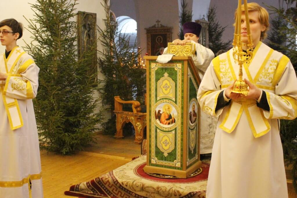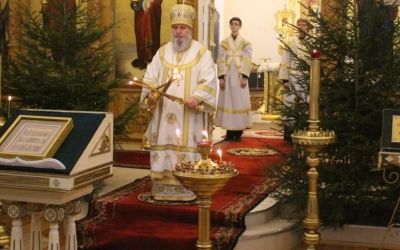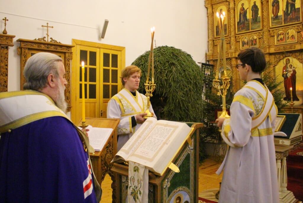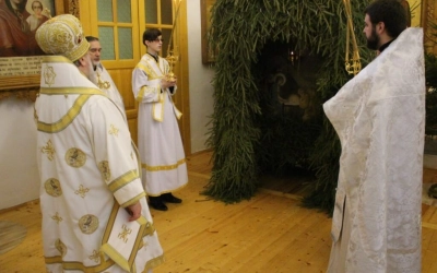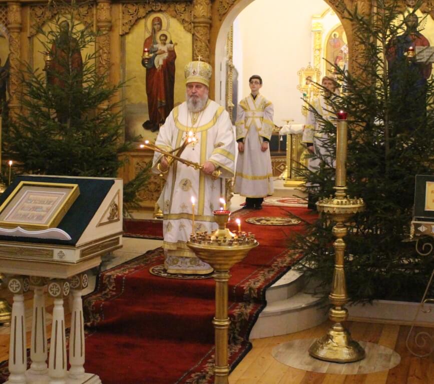 Уставные богослужения Рождественского сочельника возглавил епископ Вяземский и Гагаринский Сергий в сослужении духовенства Свято-Троицкого собора.