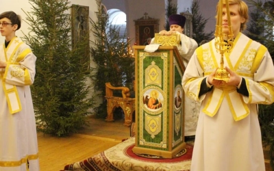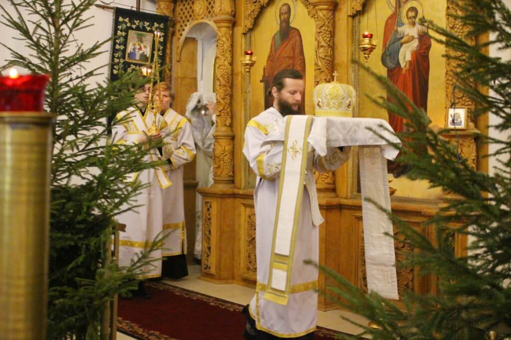 В сочельник в храмах совершаются Царские часы, читаются псалмы и отрывки из Священного Писания. После этого с Вечерни, наполненной радостью о Рождестве Христовом, начинается литургия Василия Великого.
