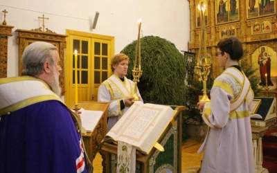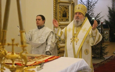 Богослужебные песнопения исполнил хор кафедрального храма.