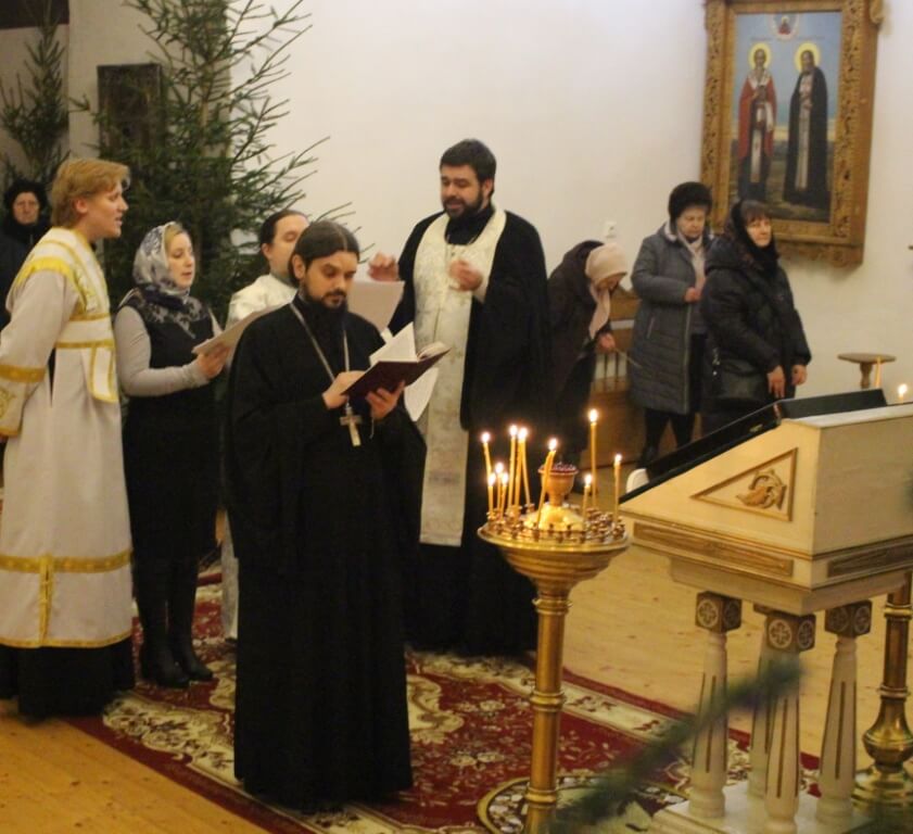 настоятель Свято-Троицкого кафедрального собора города Вязьма иерей Александр Курмелёв, клирик Свято-Троицкого кафедрального собора города Вязьма иерей Владимир Покатов, клирик Свято-Троицкого кафедрального собора города Вязьма иеромонах Симеон (Берёзкин).