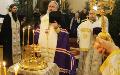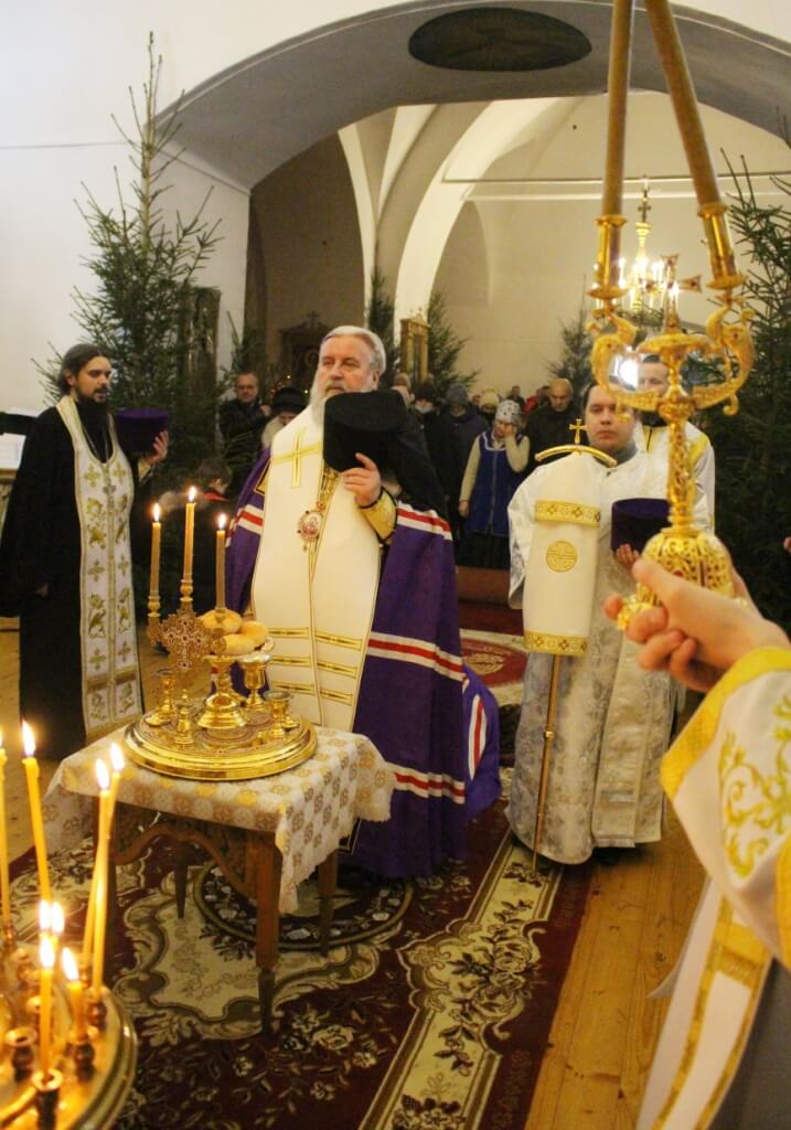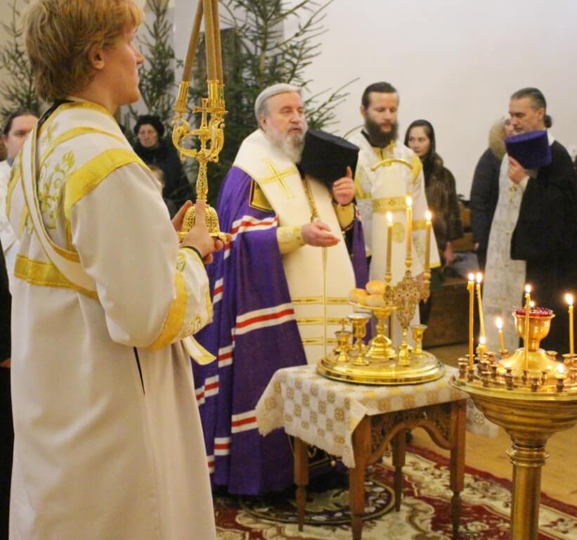 После великого повечерия была совершена лития, во время которой было совершено благословение и освящение пяти хлебов, пшеницы, вина и елея.