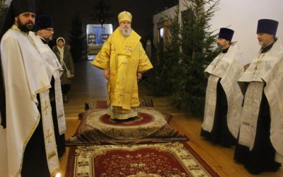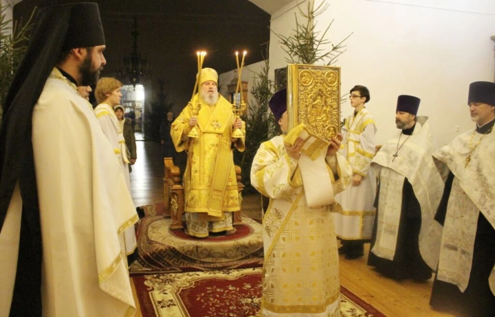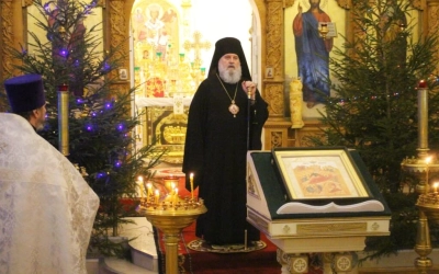 В завершении богослужения Епископ Сергий обратился к присутствующим с Архипастырским словом, поздравив духовенство и всех участников богослужения с Великим праздником Рождества Христова.
