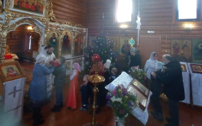 Праздничное богослужение возглавил настоятель храма Пророка Илии иерей Ростислав Суконченко. В этом году воскресная литургия была совмещена с детской Рождественской литургией.