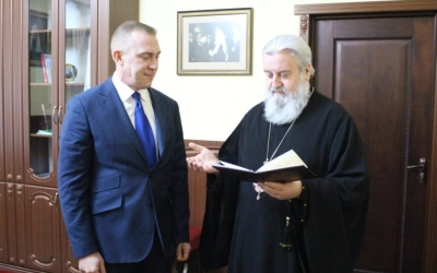 Епископ Сергий выразил слова благодарности Алексею Николаевичу за усердные труды на благо Вяземской епархии Русской Православной Церкви, и поздравил его с высокой Патриаршей наградой.