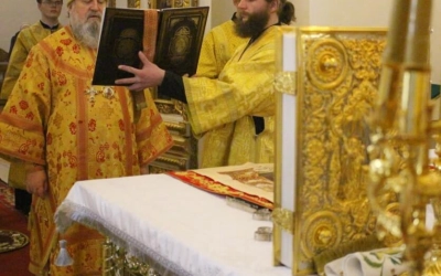 В завершении богослужения Епископ Сергий обратился к присутствующим с Архипастырским словом, поздравив духовенство и всех участников богослужения с воскресным днём и днём празднования Собора 70-ти апостолов.