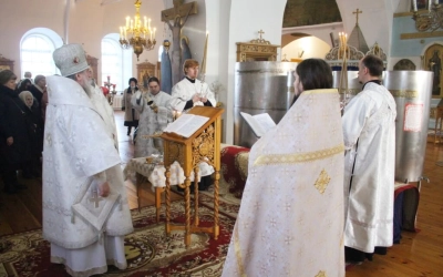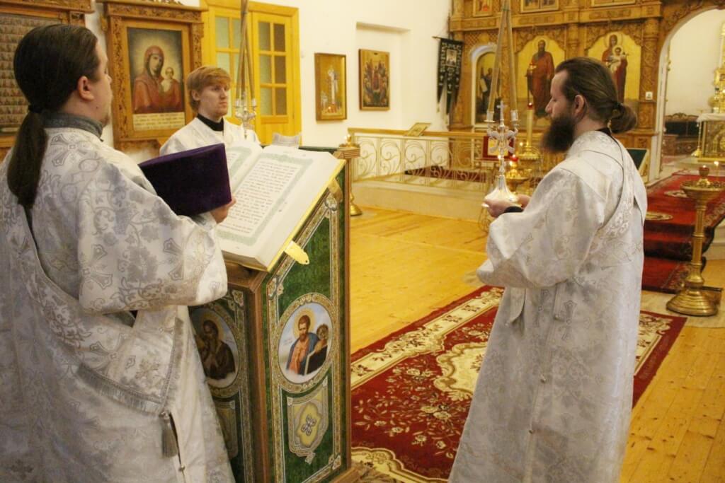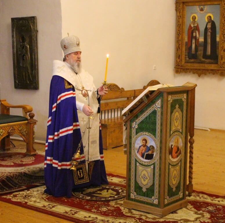 Епископ Сергий совершил положенные в этот день Царские часы. Затем была отслужена Великая вечерня с чтением 13-ти праздничных премий, в соединении с Литургией святителя Василия Великого.