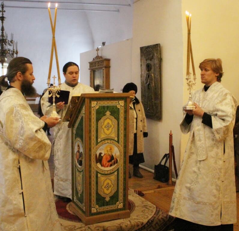 настоятель Свято-Троицкого кафедрального собора города Вязьма иерей Александр Курмелёв, клирик Свято-Троицкого кафедрального собора города Вязьма иерей Владимир Покатов, клирик Свято-Троицкого кафедрального собора города Вязьма иеромонах Симеон (Берёзкин).