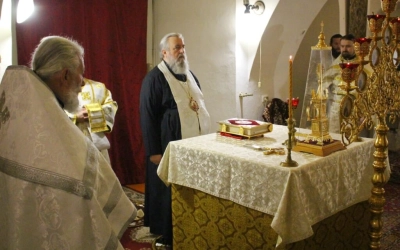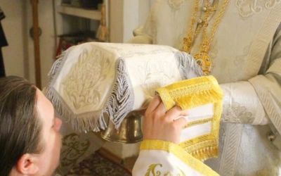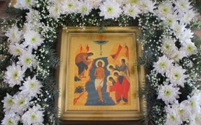 По отпусте Божественной литургии было совершено славление по случаю двунадесятого праздника Крещения Господня.