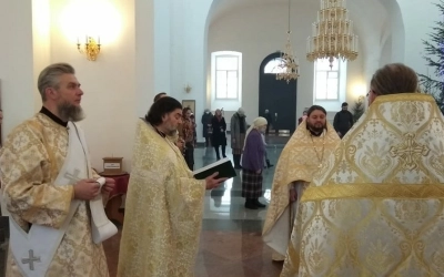 По окончании Богослужения, игумен Александр обратился к верующим с пастырским словом и поздравил с праздником Обрезания Господня.