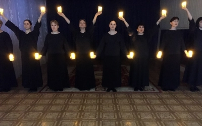 Хореографическая композиция со свечами «Колокол ждет» в исполнении педагогов д/с №10, автор Ходченкова Инесса Юрьевна, музыкальный руководитель.Музыка и слова Л. Агутина, исп. Т. Гвердцители.