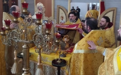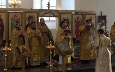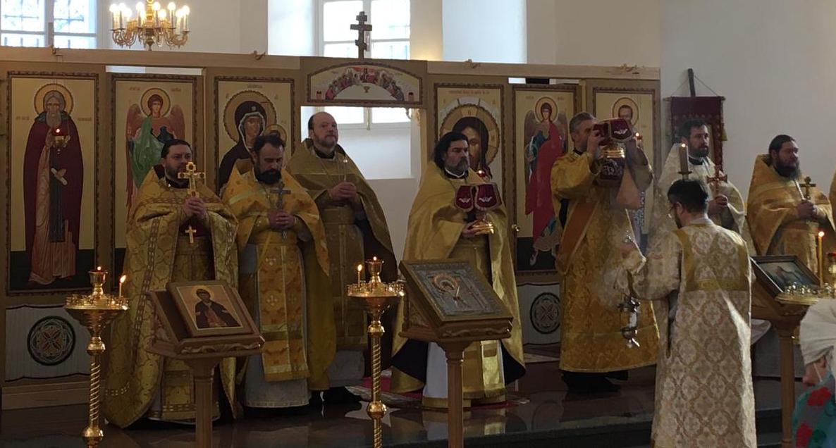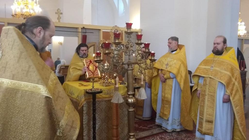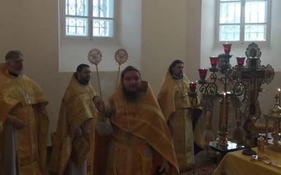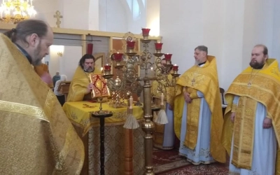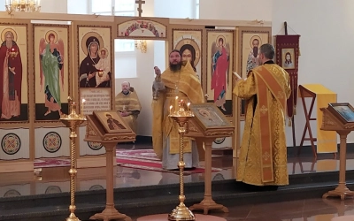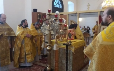 За богослужением были вознесены молитвы о здравии Святейшего Патриарха Московского и всея Руси Кирилла.
