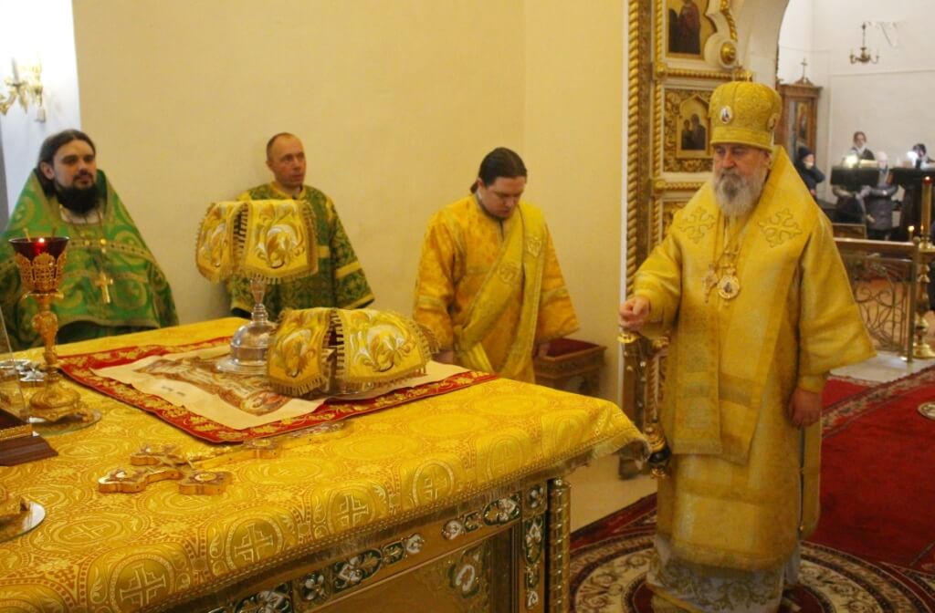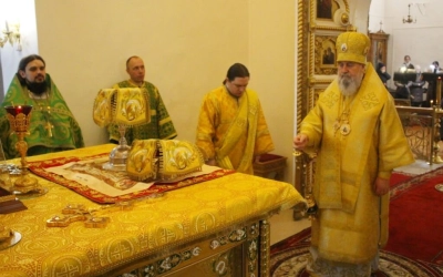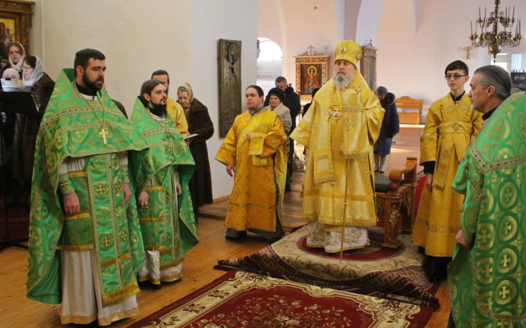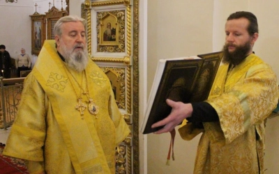 По завершении богослужения Епископ Сергий обратился к присутствующим с Архипастырским словом, поздравив духовенство и всех участников богослужения с днём памяти Блж. Ксении Петербургской.