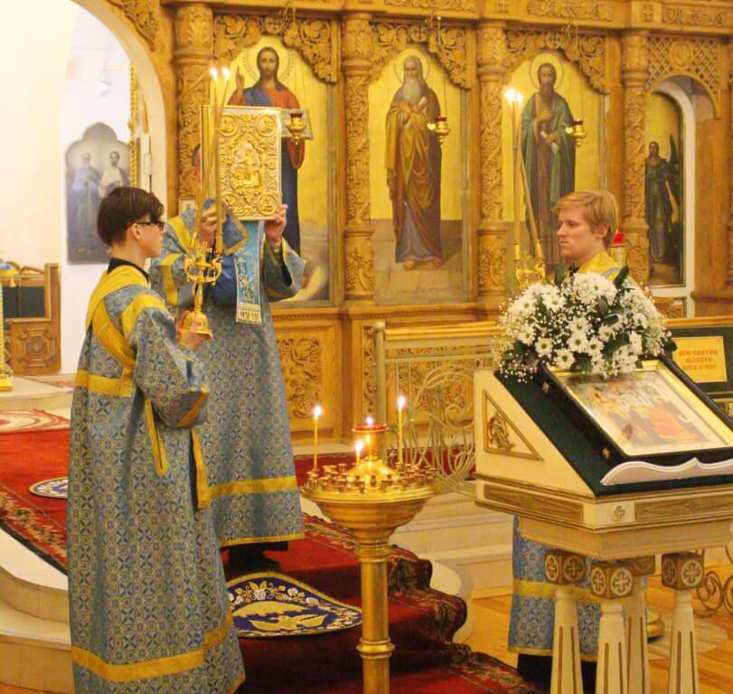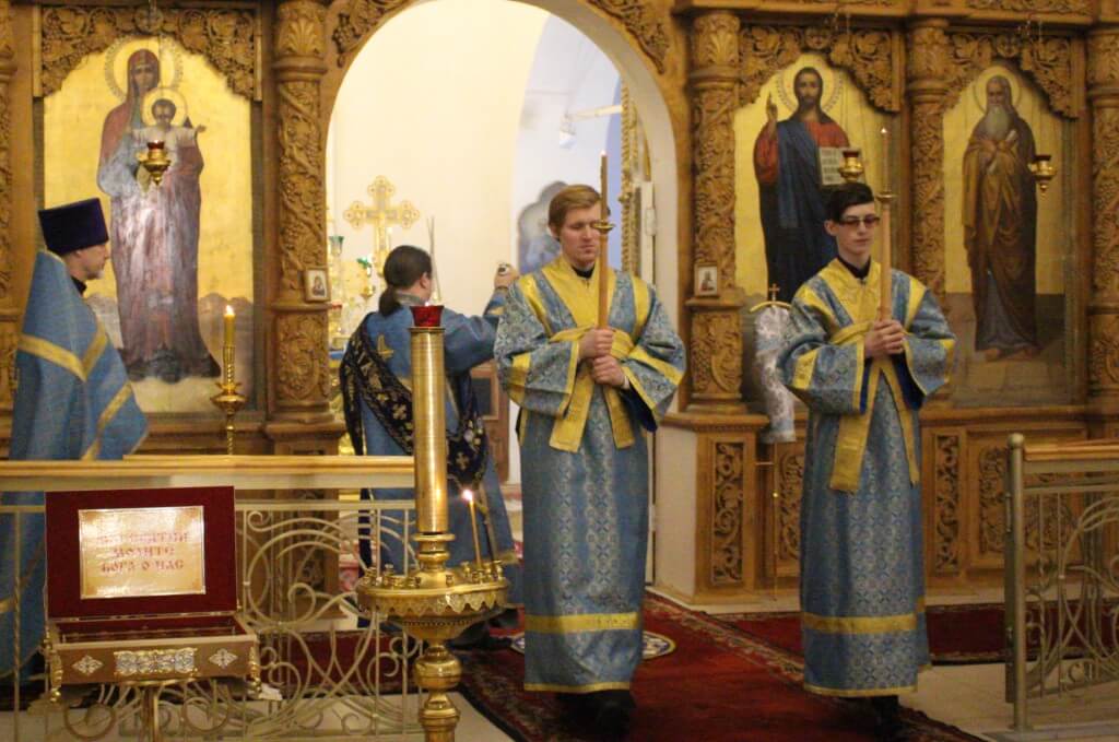 На полиелее у иконы Сретения Господня было пропето величание: «Величаем Тя, Живодавче Христе, и чтим Пречистую Матерь Твою, Еюже по закону ныне принеслся еси в храм Господень».