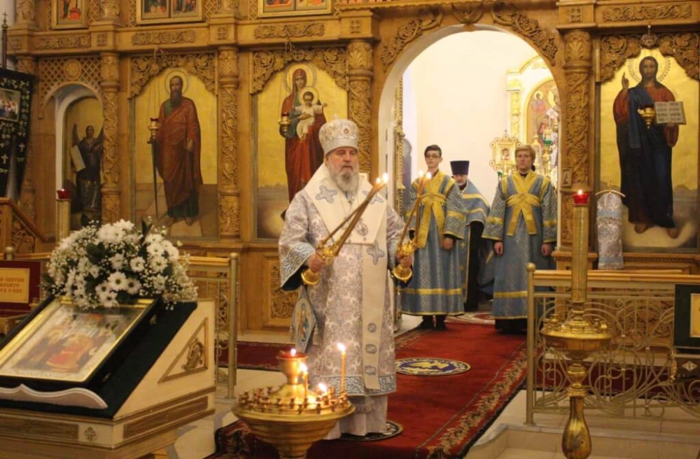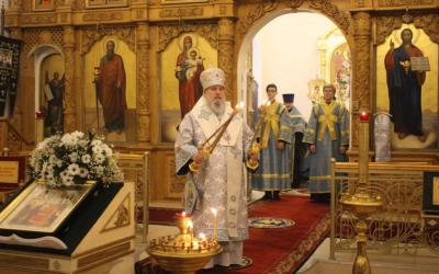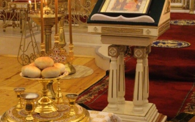 На великом повечерии Преосвященнейшим Владыкой была совершена лития - прилежное моление о всем мире - и освящение хлебов.