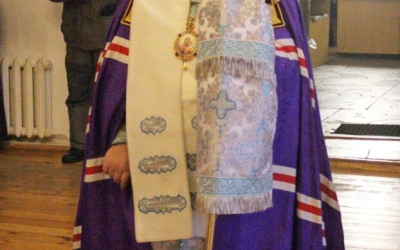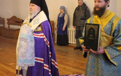 После пения прокимна епископ Сергий совершил чтение Евангельского зачала, посвящённого Сретению Господа Бога и Спаса нашего Иисуса Христа.