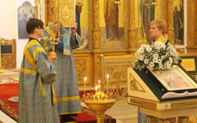 Богослужебные песнопения исполнил хор Свято-Троицкого собора-регент Татьяна Курмелёва.