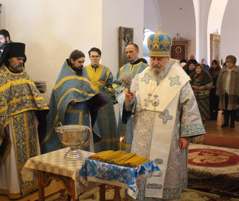 В начале праздничного богослужения Епископ Сергий совершил чин освящения Сретенских свечей.