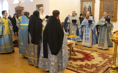 В совершении праздничного богослужения Преосвященнейшему Владыке сослужили: