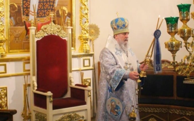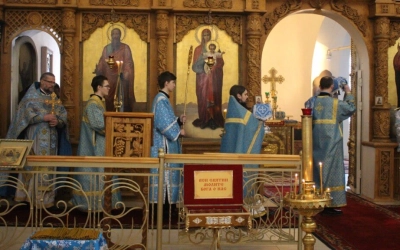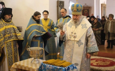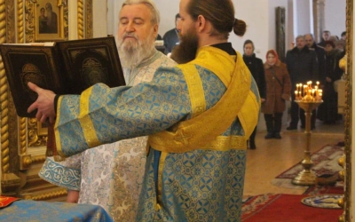 По отпусте Божественной литургии было совершёно славление по случаю праздника Сретения Господня.
