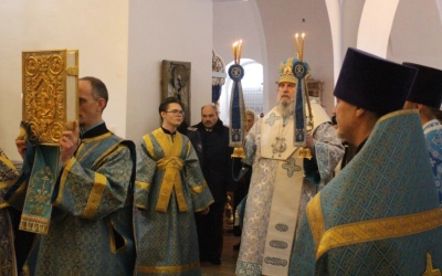 На сугубой ектении были возглашены прошения о тезоименитом Епископе Сергии.