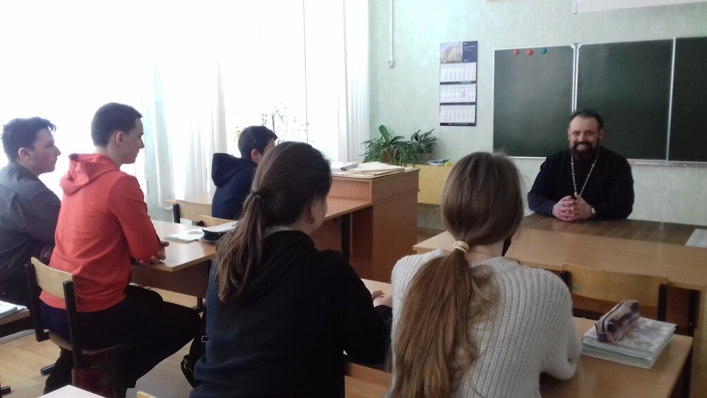 Урок прошёл в формате диалога священника и молодёжи, которые задавали вопросы священнику.