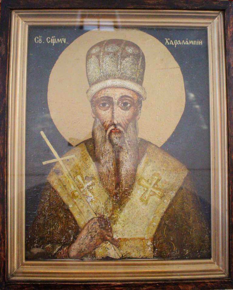 Правый предел Вознесенского храма города Гагарин освящён в честь Сщмч. Харала́мпия, епископа Магнезийского.