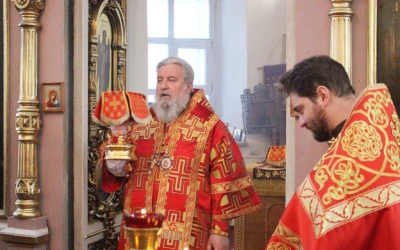 В завершении богослужения Епископ Сергий обратился к прихожанам с Архипастырским словом в котором рассказал о жизни и служении Сщмч. Харала́мпия.