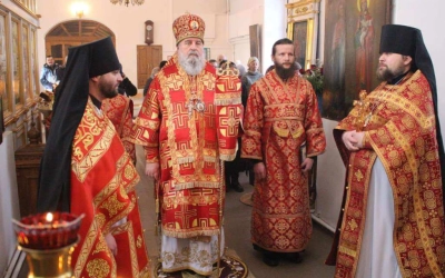 Правящему Архиерею сослужили: наместник Свято-Владимирской обители на истоке Днепра игумен Тимофей (Ближенский), настоятель храма иконы Божией Матери "Всех Скорбящих Радосте" села Карманово иеромонах Андрей (Дергачёв-Белошецкий).