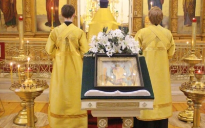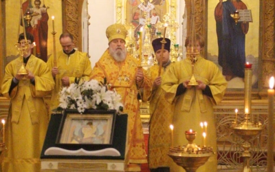 В завершении богослужения Владыка Сергий совершил молитву перед чудотворным образом Божией Матери "Иверская".