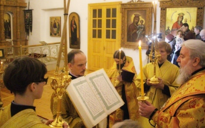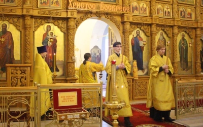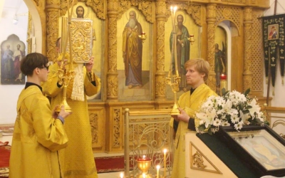 Богослужебные песнопения исполнил хор Свято-Троицкого собора-регент Елена Платонова.