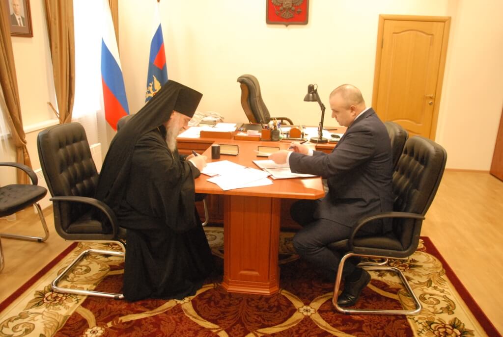 Соглашение подписали епископ Вяземский и Гагаринский Сергий и начальник Управления Федеральной службы исполнения наказаний по Смоленской области Александр Владимирович Трачук.