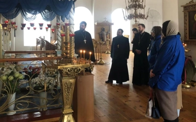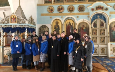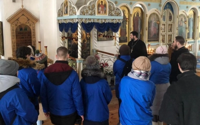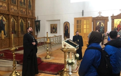 В Свято-Троицком кафедральном соборе группу встретил руководитель молодёжно-миссионерского отдела Вяземской епархии иеромонах Захария (Герасименко).
