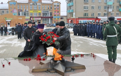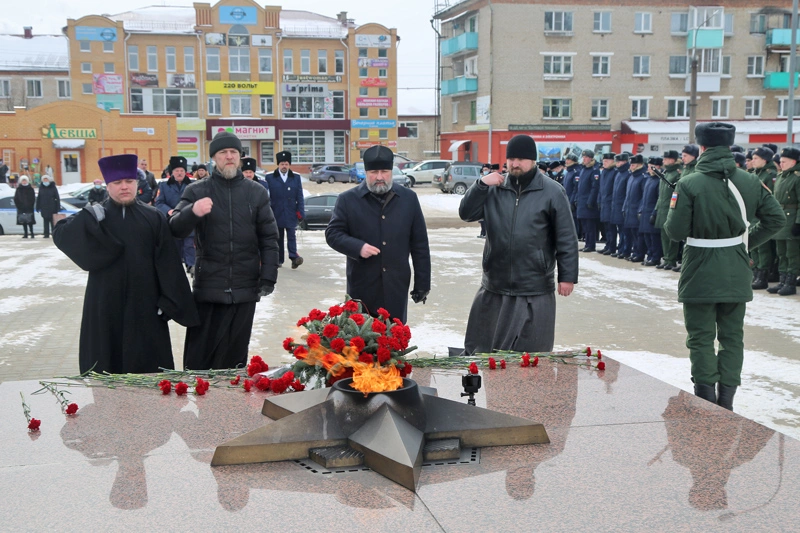 Множество вязьмичей собралось сегодня у Вечного огня, чтобы почтить память воинов, павших при освобождении города Вязьма.
