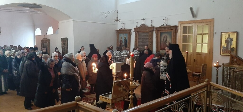 После отпуста вечерни епископ Вяземский и Гагаринский Сергий прочитал молитву на начало Великого поста.