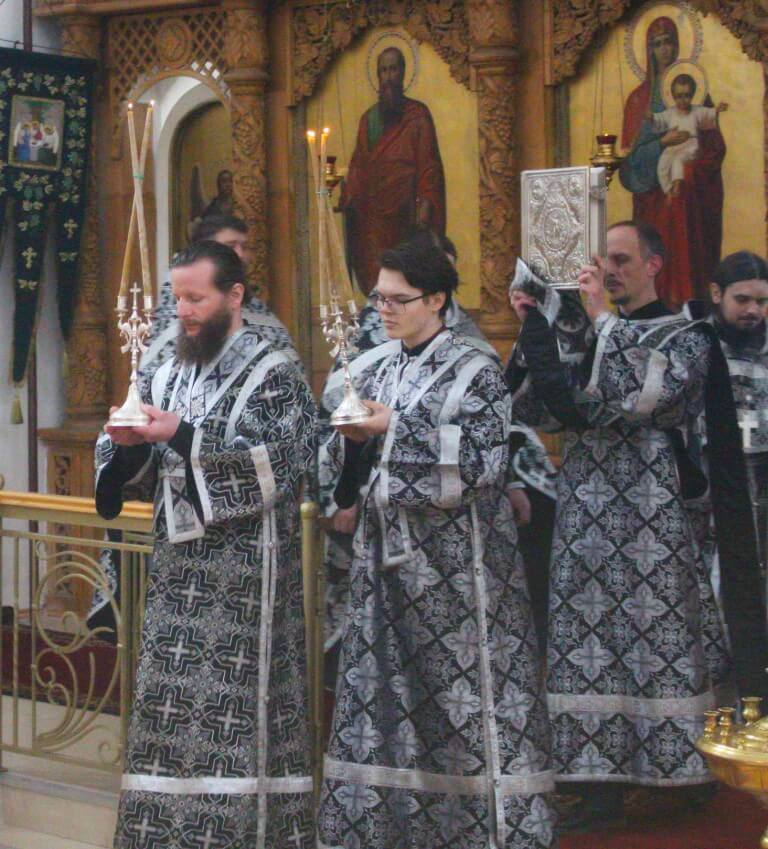 За великопостным богослужением Его Преосвященству сослужили: настоятель Свято-Троицкого собора иерей Александр Курмелёв, настоятель храма Рождества Пресвятой Богородицы иерей Владимир Прокопчук, настоятель храма прп. Серафима Саровского иерей Алексий.