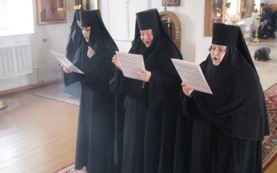 Богослужебные песнопения исполнил хор Иоанно-Предтеченского женского монастыря - регент монахиня Вирсавия (Стручкова).