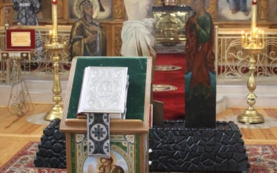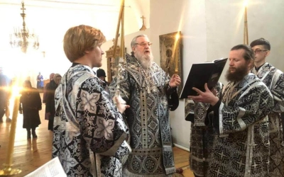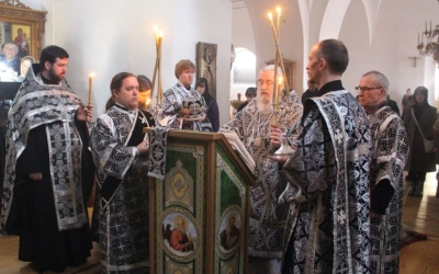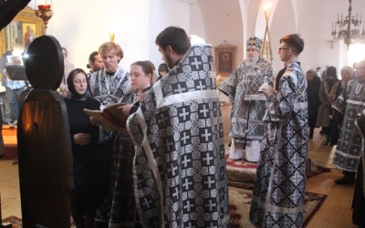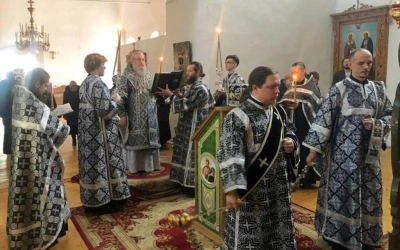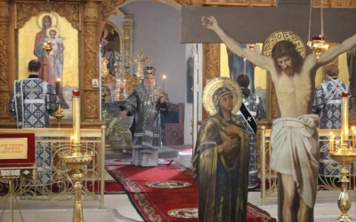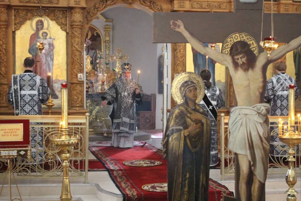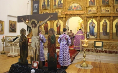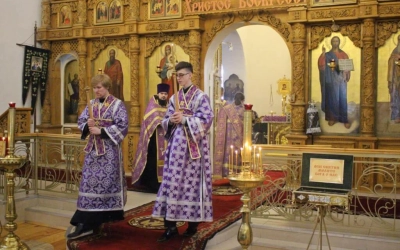 Духовенство во главе с епископом Сергием прочитали акафист Божественным Страстям Христовым, составленный в 19 веке Святителем Херсонским и Таврическим Иннокентием (Борисовым).