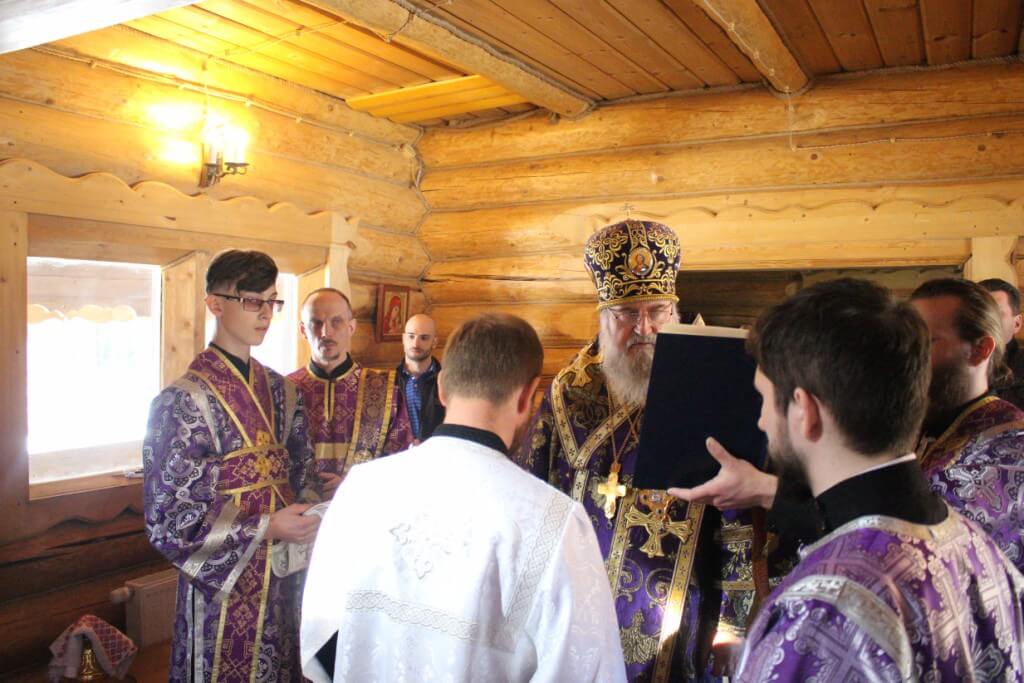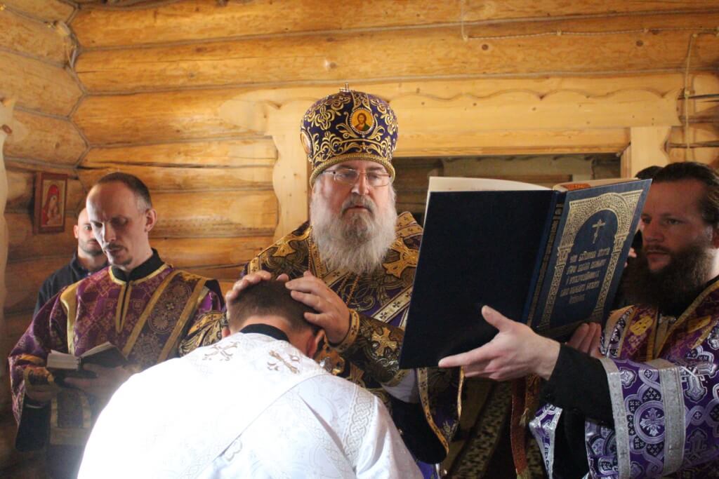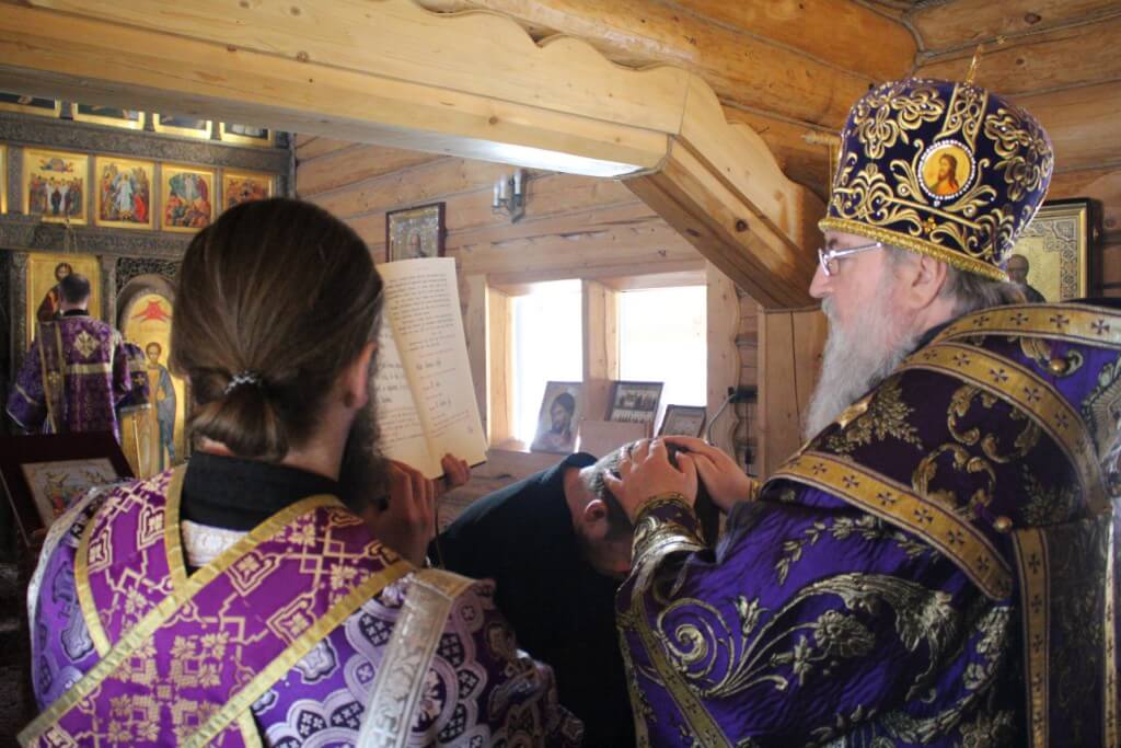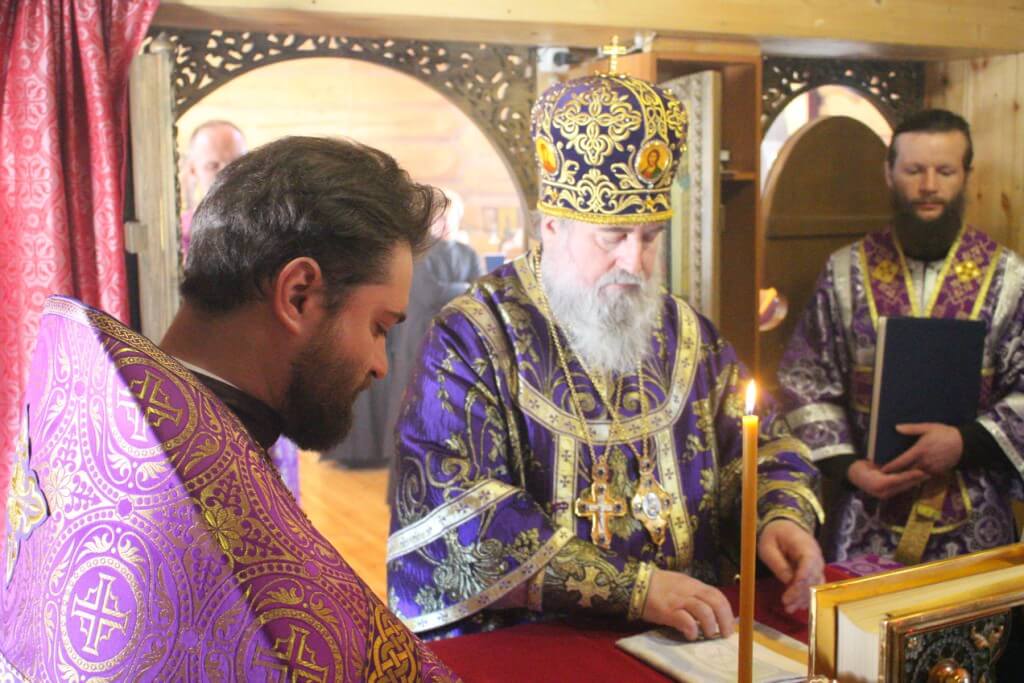 Во время пения антифонов Епископ Сергий совершил чин хиротесии во иподиакона над насельником монастыря иноком Николаем.