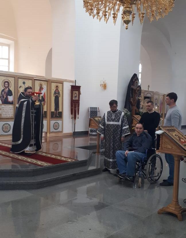 Вся команда сработала очень четко. По благословению настоятеля Благовещенского собора игумена Александра (Карпикова) был обустроен временный пандус на южном входе храма, ребята из казачества приложили силы, чтобы помочь собраться Виктору, пересесть в коляску, сопроводить и поднять в собор, а также помочь доставить домой.Центр социального обслуживания предоставил Социальное такси, которое с комфортом доставило человека с ограниченными возможностями на Богослужение, а также предоставил инвалидное кресло (кресло Виктора не влезло в лифт дома).