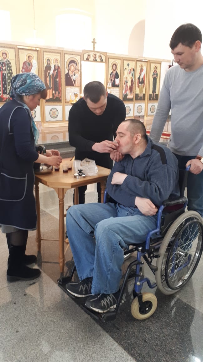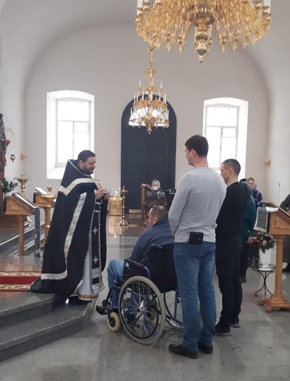 Так, благодаря предоставленному КЦСОН социальному такси и силе крепких молодых казаков, удалось доставить на Божественную Литургию Преждеосвященных Даров Виктора Шурыгина, страдающего рассеяным склерозом. Виктор ввиду недуга уже много лет не имел возможности даже просто выйти на улицу.