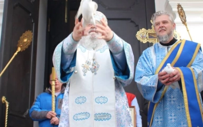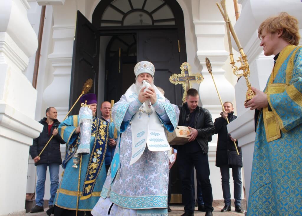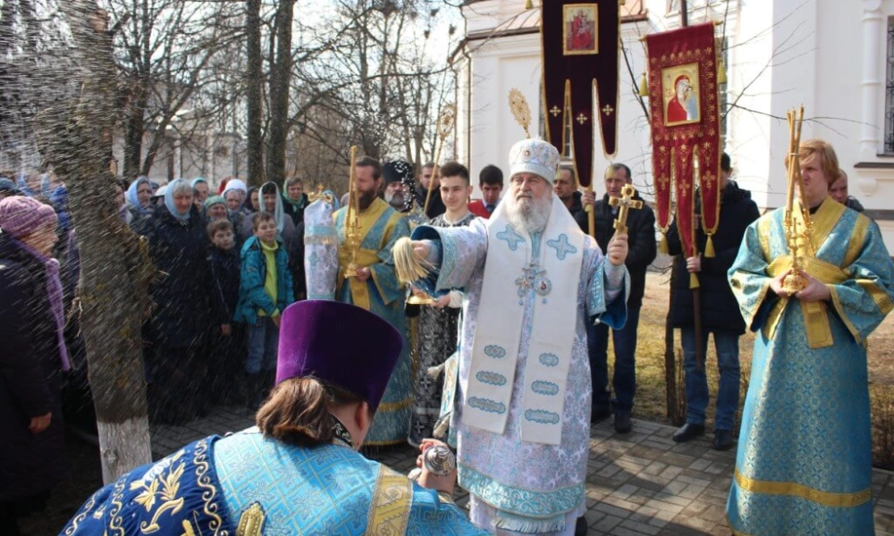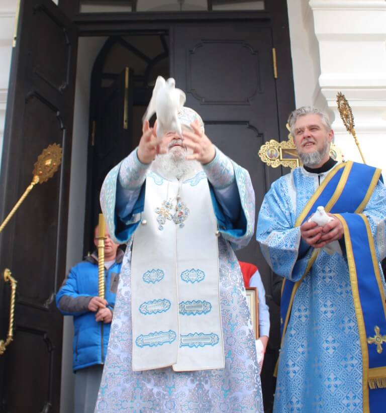 По древней традиции после Крестного хода, по случаю праздника Благовещения, епископ Сергий выпустил в небо белых голубей.