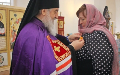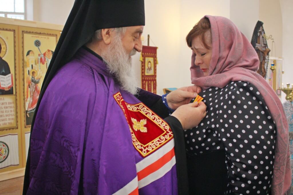 В продолжении своего слова епископ Сергий наградил, во внимание к трудам на благо Русской Православной Церкви: