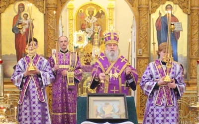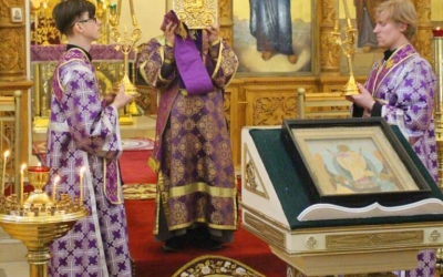 В завершении богослужения Владыка Сергий совершил молитву перед чудотворным образом Божией Матери "Иверская".